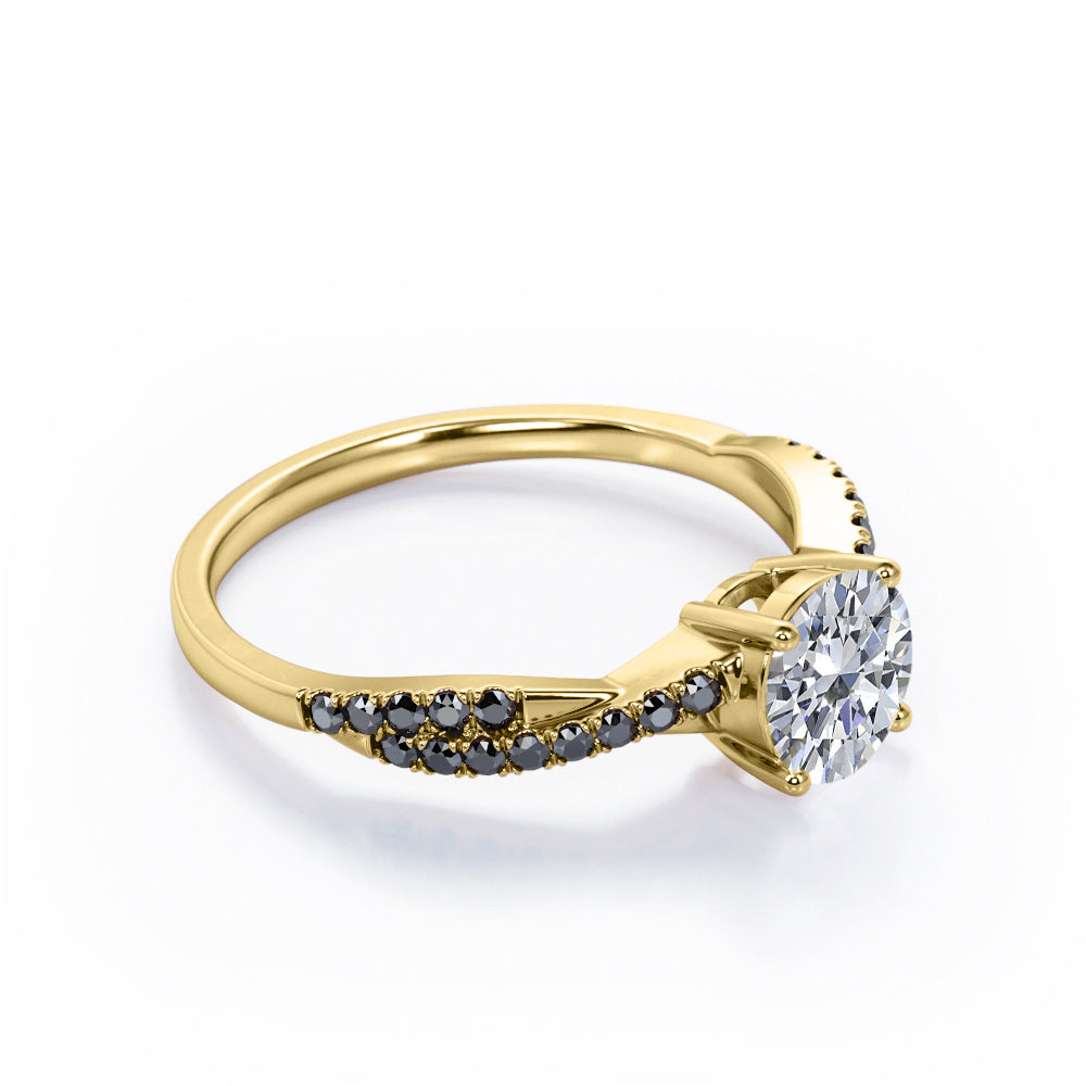 Basket Cathedral - 1.45 TCW Round Shape Moissanite with Lab Created Black Diamond - Crossover Pave Engagement Ring in Black Gold