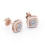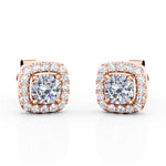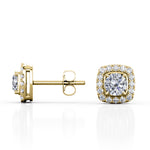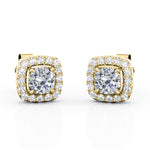 Basket Prong Setting 1.10 Carat Round Certified Moissanite and Diamond Halo Pave Stud Earrings in Yellow Gold