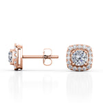 This Basket Prong Setting 1.10 Carat Round Certified Moissanite and Diamond Halo Pave Stud Earrings in Yellow Gold will always fit any looks whether it is for yourself or for your special someone. This timeless designer ear studs displays an approximate .50 carat round cut certified moissanite on each side, surrounded by .10 side diamonds, for a total 1.10 carat. A certificate of authenticity will be provided with every orders. Our moissanites are D (colorless) in color and VVS1 in clarity. This pair of earrings can be customized to either Rose Gold, White Gold, Yellow Gold or Black Gold. Also, it can be made with 18k Gold over Silver, 10k Gold, 14k Gold or 18k Gold. All our jewelry are precisely handmade to order by our experienced jeweler. Made with love, deliver to you with care. All order comes with satisfaction guarantee policy. If your are not satisfied with your purchase, you can request a refund within 30 days upon receipt of the item without question asked. As unique as you are, create your own special pieces of jewelry. Being one of the most sought after gemstones, it is always brilliant and sparkling. Suitable for everyday wear, its design simply matches any style of wearers. It qualifies as one of the best gifts for every single special occasions like Christmas, Valentine's, Anniversaries, Birthday, Mother's Day, etc. Handmade with love, it carries the best sparkle and luster. This pair of earrings will surely take her breath away with its dazzling sparkle. Customized, Personalized, The sublime gift for your loved one.