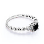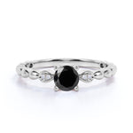Beaded 1.10 Carat Round Brilliant Lab Black Diamond and Classic Engagement Ring in White Gold