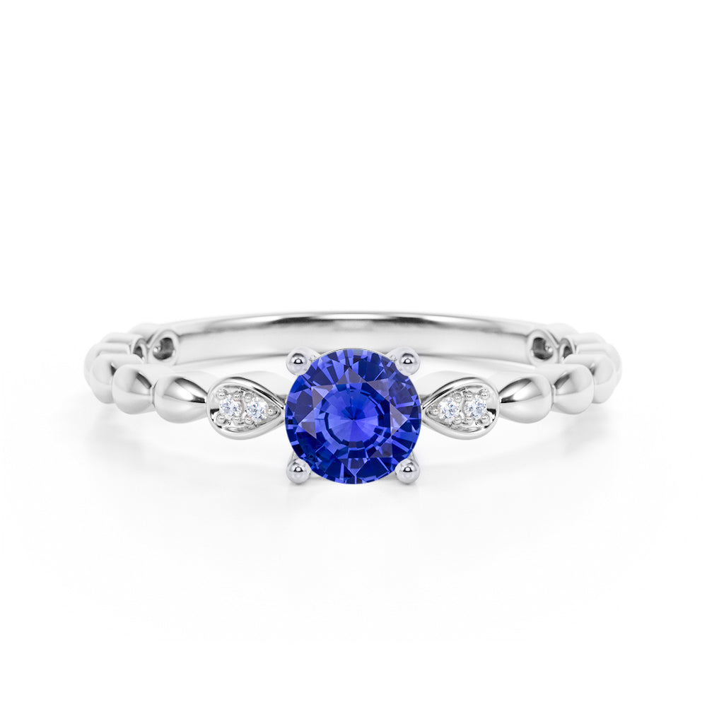 The vintage blue sapphire ring is quite amazing, since majority of us likes to see a vintage look, especially with an engagement ring that is absolutely beautiful. If you are done with all the unnecessary crazy design, this minimalist blue sapphire ring is for you. This sapphire ring features an approximately 1 carat round shape natural sapphire, surrounded by .10 carat certified diamond accent, for a total weight of 1.10 carats.