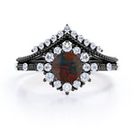 Tiara 1.40 Ct Round Cut Lab Created Black Opal Bridal Set