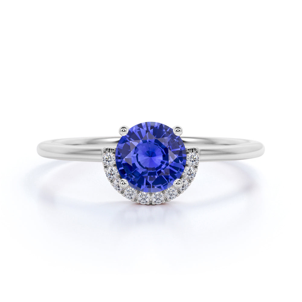 Beautiful 1.25 Carat Round Cut Sapphire and Diamond Engagement Ring in 10k White Gold