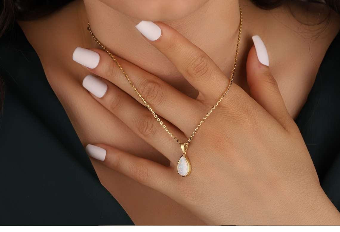 Beautiful 1 Carat Pear Shape Opal Solitaire Pendant Necklace in 18k Yellow Gold over Silver