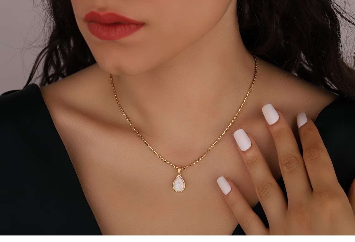 Tell them you love them with our Beautiful 1 Carat Pear Shape Opal Solitaire Pendant Necklace in 18k Yellow Gold over Silver. Delicately crafted by our specialists, this opal stone necklace features 1 carat opal in 18K yellow gold over silver. The chain of this beautiful opal jewelry necklace is yellow and is 18 inches long. The specially designed pendant makes this the perfect white opal pendant. This white opal necklace will surely make you stand out from the crowd. This opal jewelry necklace feature elements of exquisite beauty making it very worthy for your purchase. The fire opal jewelry is the right necklace for any of your special occasions, an addition to your precious collection, or a stylish everyday wear. Make them feel special with this opal pendant necklace and they will be the happiest person in the whole world.