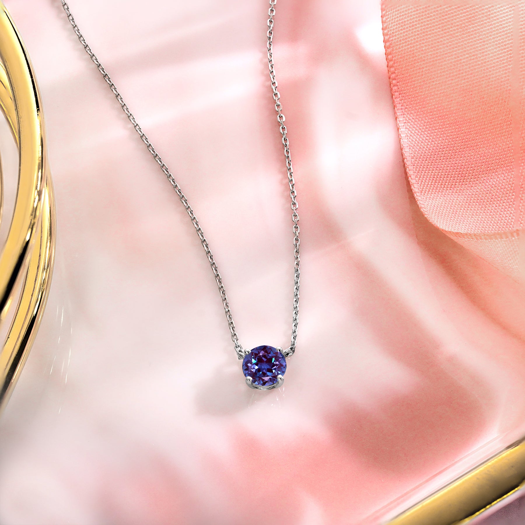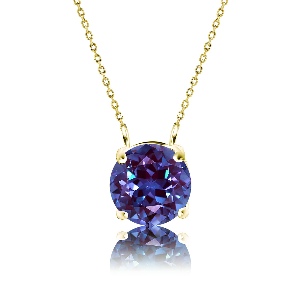 Beautiful 1 Carat Round Cut - Alexandrite - June Birthstone Solitaire Pendant Necklace in 18k White Gold over Silver, Female, Adult