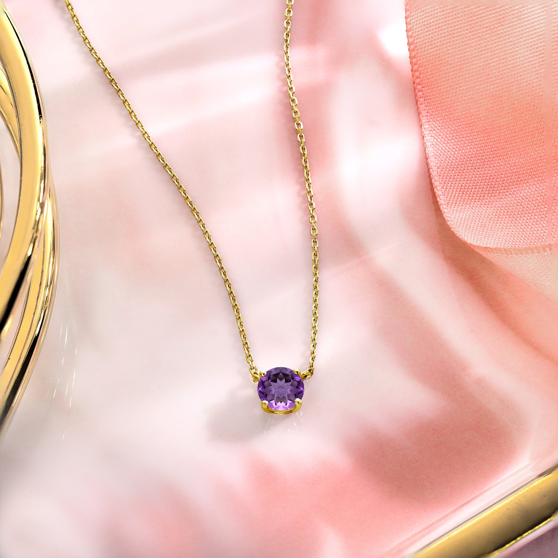 Beautiful 1 Carat Round Cut - Amethyst - February Birthstone Solitaire Pendant Necklace in 18k White Gold over Silver, Female, Adult