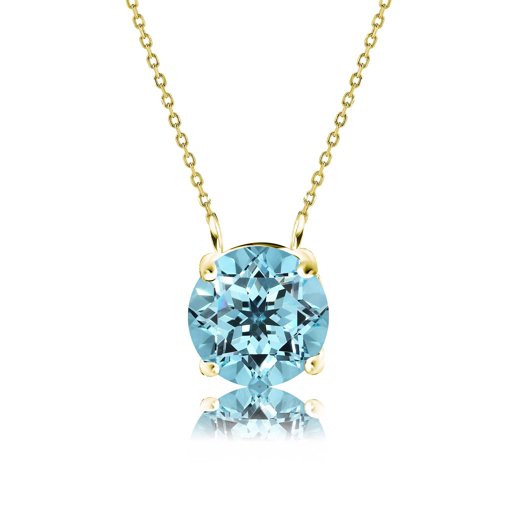 Beautiful 1 Carat Round Cut - Blue Topaz - December Birthstone Solitaire Pendant Necklace in 18k White Gold over Silver, Female, Adult