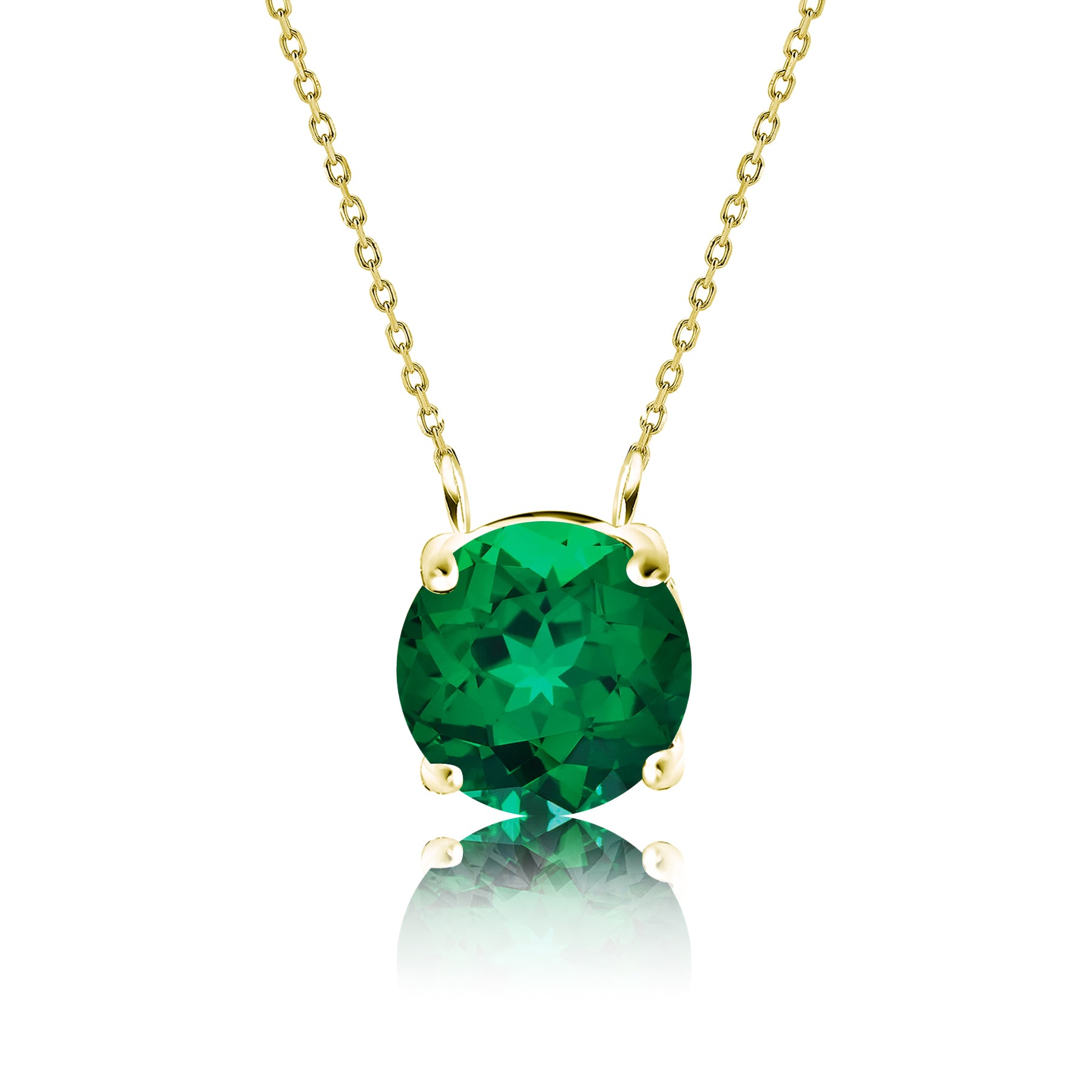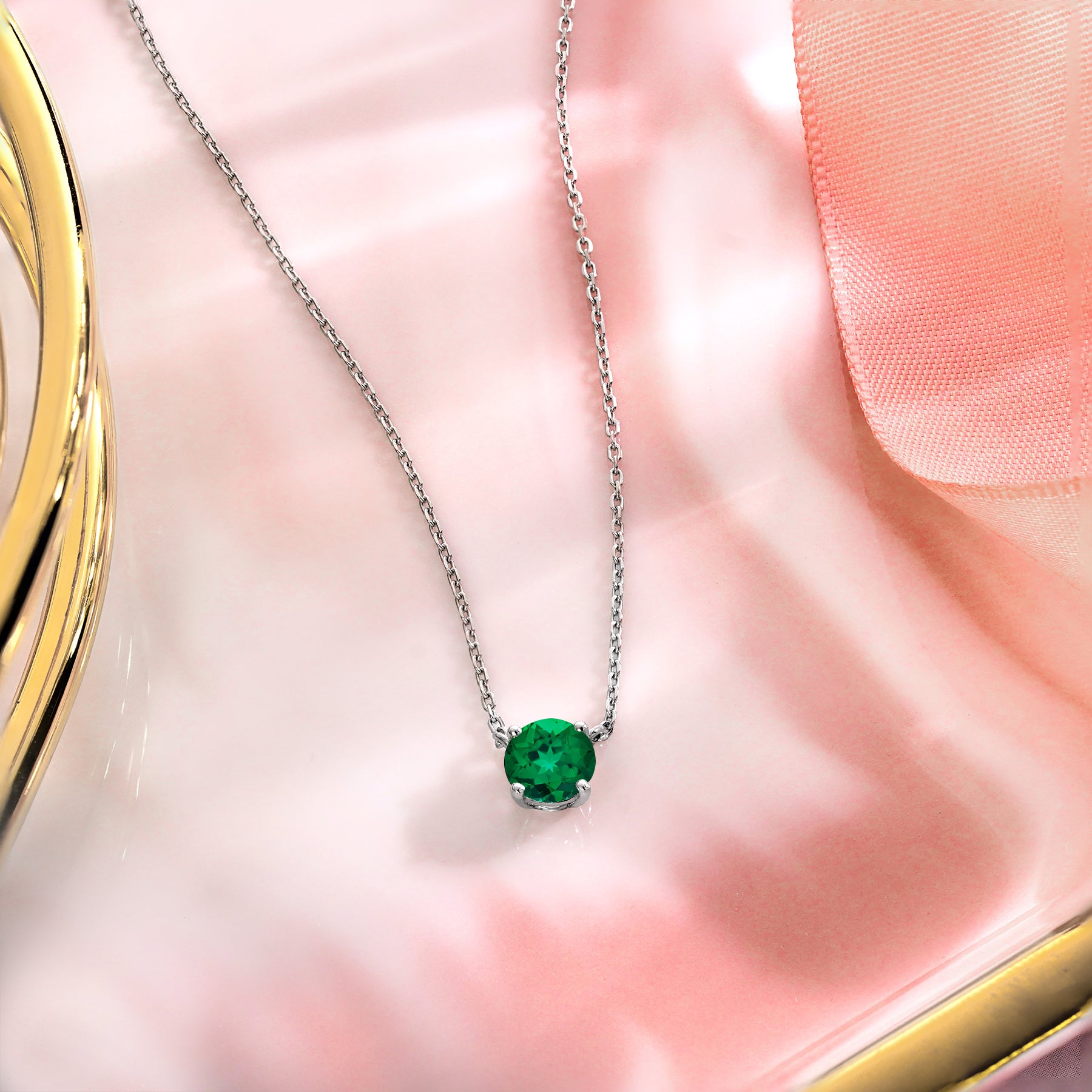 Beautiful 1 Carat Round Cut - Emerald - May Birthstone Solitaire Pendant Necklace in 18k White Gold over Silver, Female, Adult