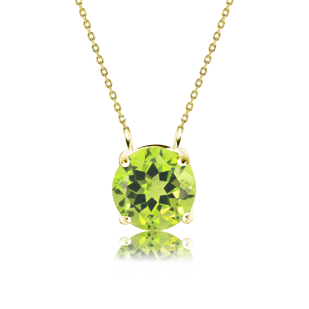 Beautiful 1 Carat Round Cut - Peridot - August Birthstone Solitaire Pendant Necklace in 18k White Gold over Silver, Female, Adult