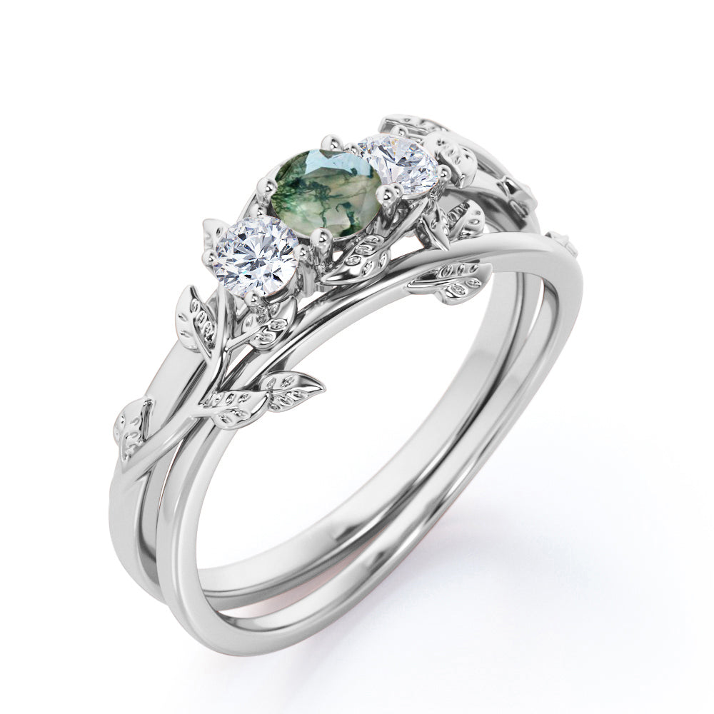 Trio 0.8 Carat Round Moss Agate Vine Bridal Set