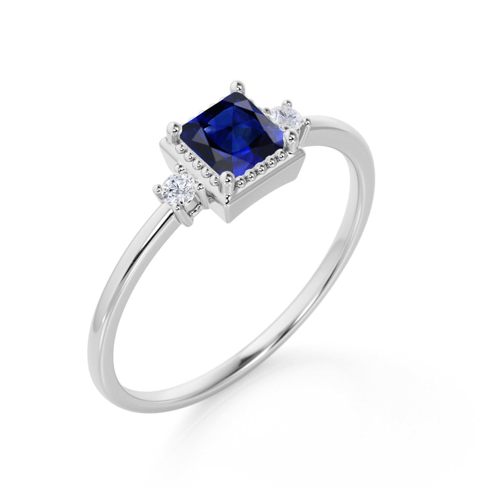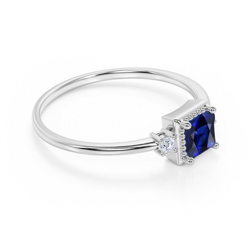 Bestselling 1.25 Carat cushion cut Blue Sapphire and Diamond Engagement Ring