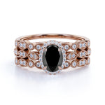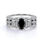 Bestselling 2 Carat Oval cut Lab Black Diamond Trio Wedding Ring Set in White Gold