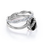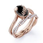 1.50 ct Oval Lab Black Diamond Leaf Vine Bridal Set