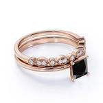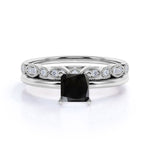 Bestselling 1.50 Carat Princess cut Wedding Ring Set with Lab Black Diamond for Women in White Gold