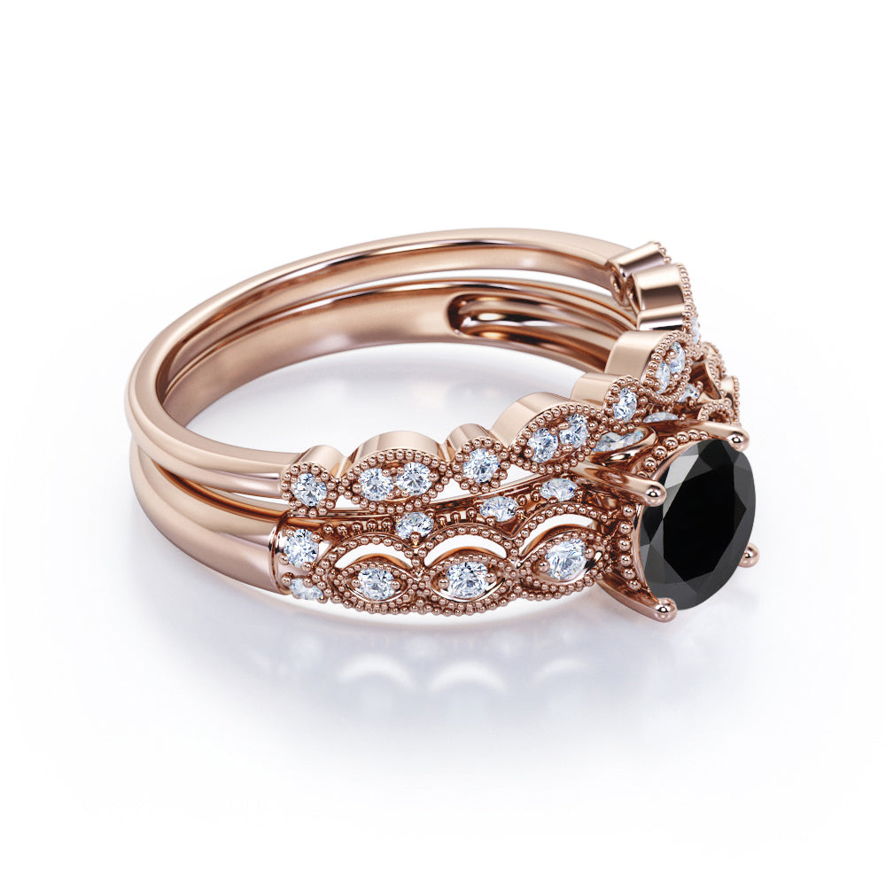 Bestselling 1.50 Carat Wedding Ring Set with Lab Black Diamond for Women in Rose Gold