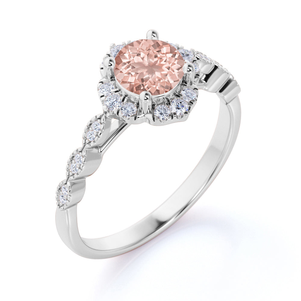 Bestselling 1.75 Carat Round Peach Pink Morganite and Diamond Antique Art Deco Engagement Ring in White Gold
