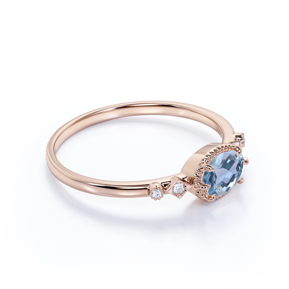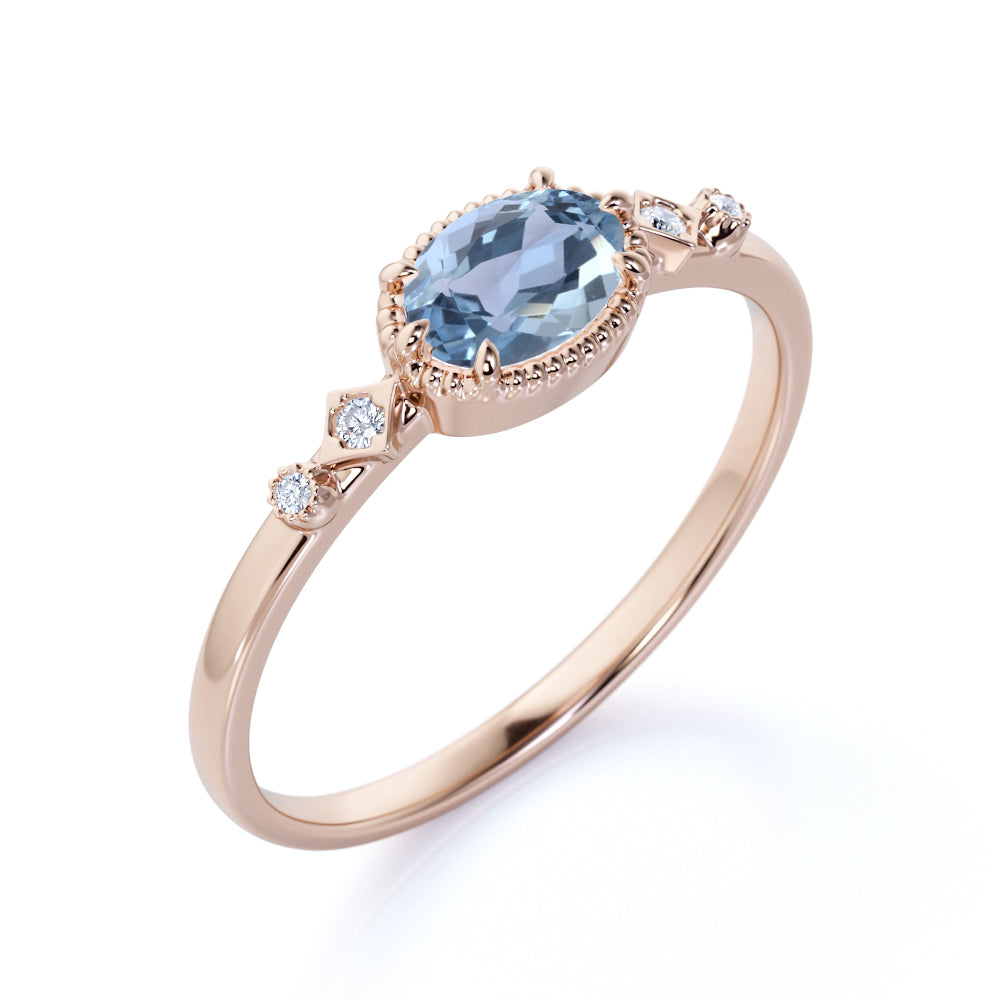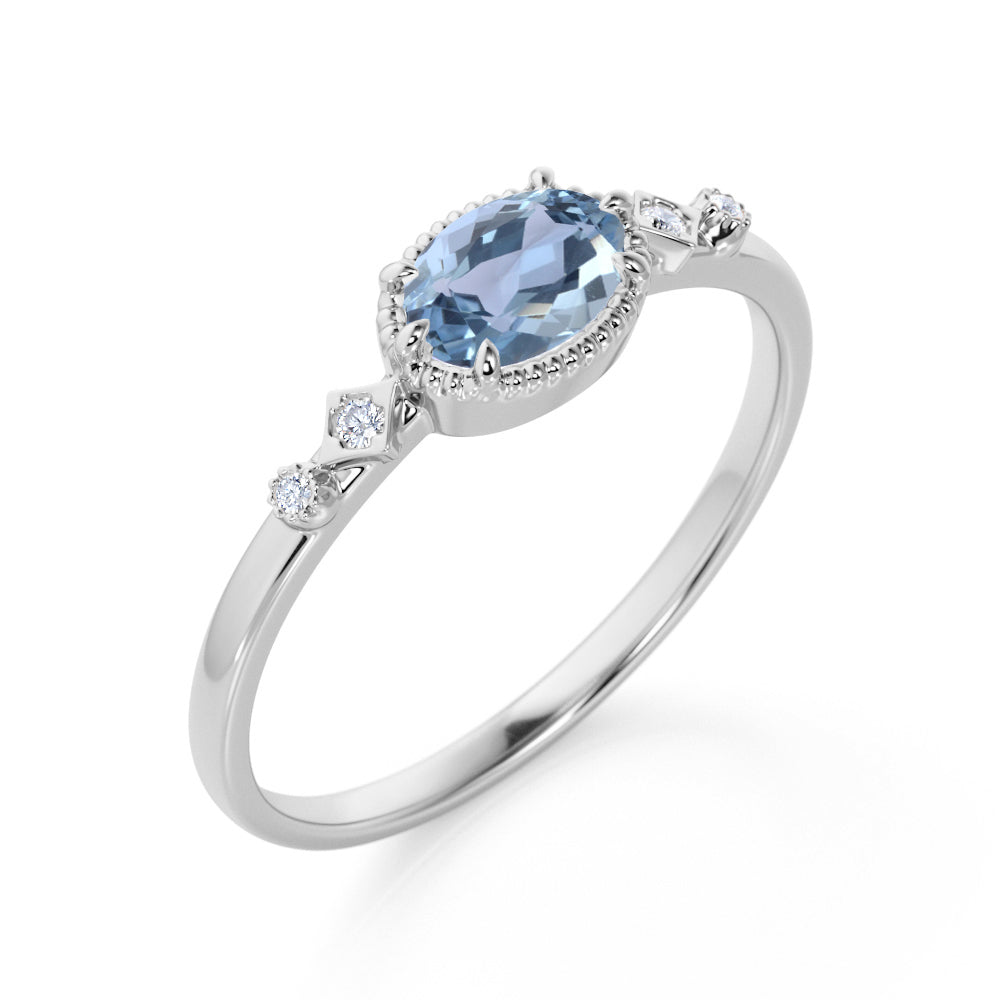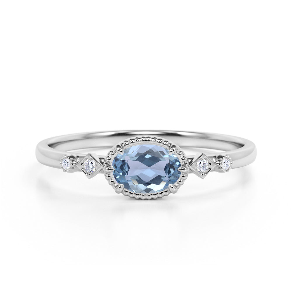 Bestselling East West 1.10 Carat Oval Cut Aquamarine and Diamond Bezel Engagement Ring in White Gold