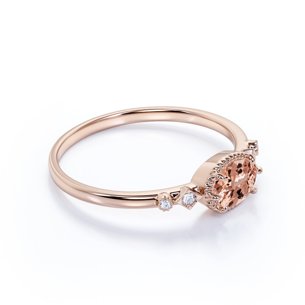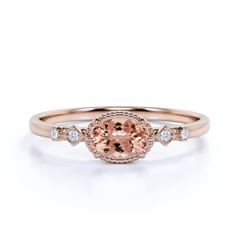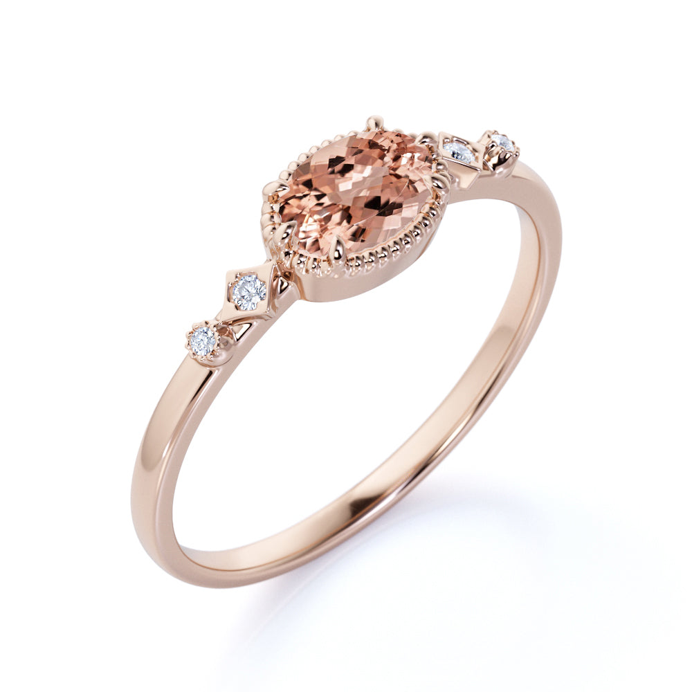 Bestselling East West 1.10 Carat Oval Cut Dark Pink Morganite and Diamond Bezel Set Engagement Ring in Rose Gold