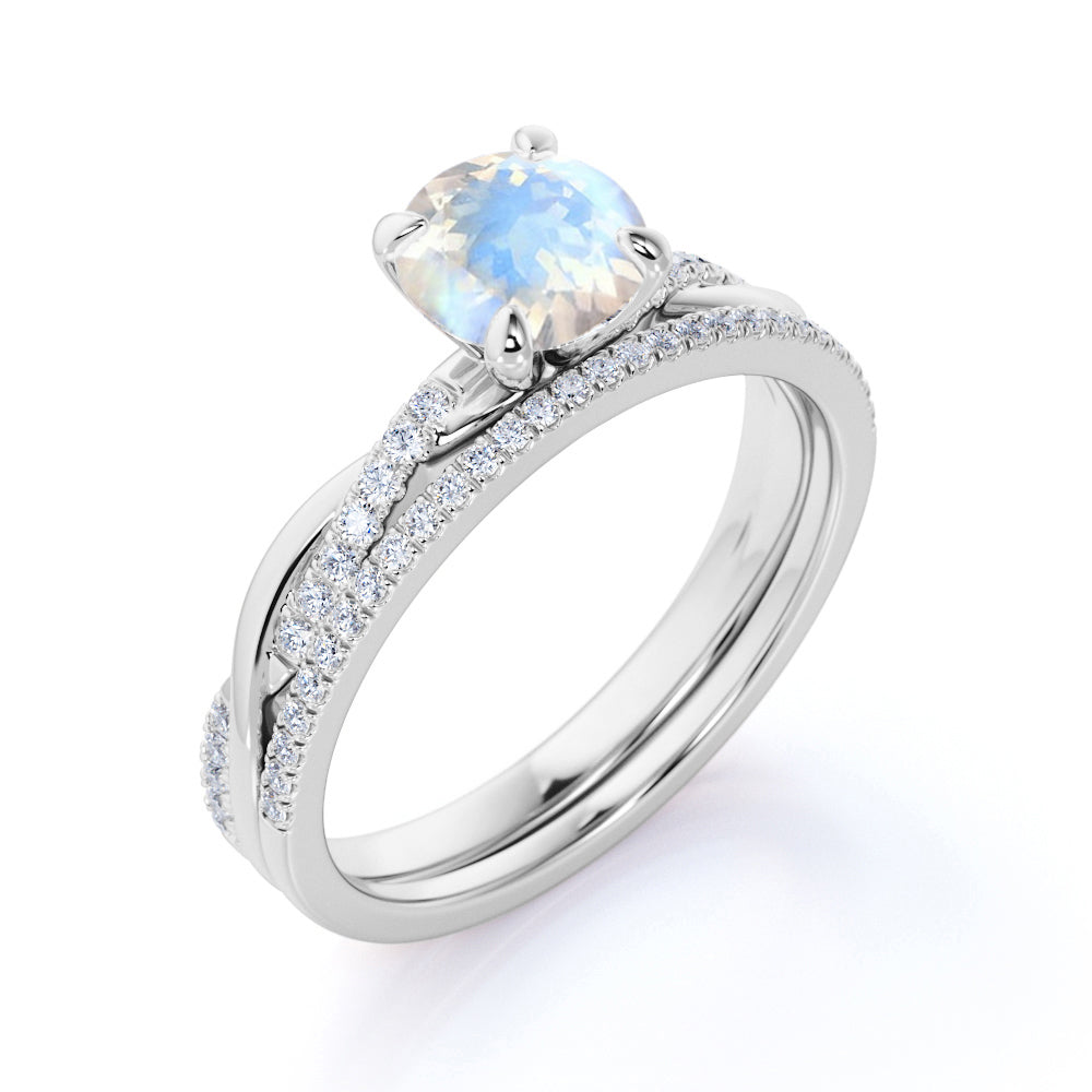 Infinity 1.25 ct Round Moonstone Wedding Set
