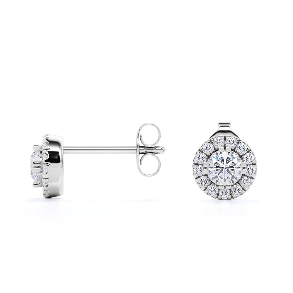 Bezel French Pave 0.43 CT TDW Round Certified Lab Diamond Double Prong Stud Earrings in White Gold