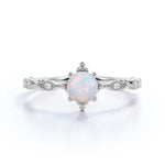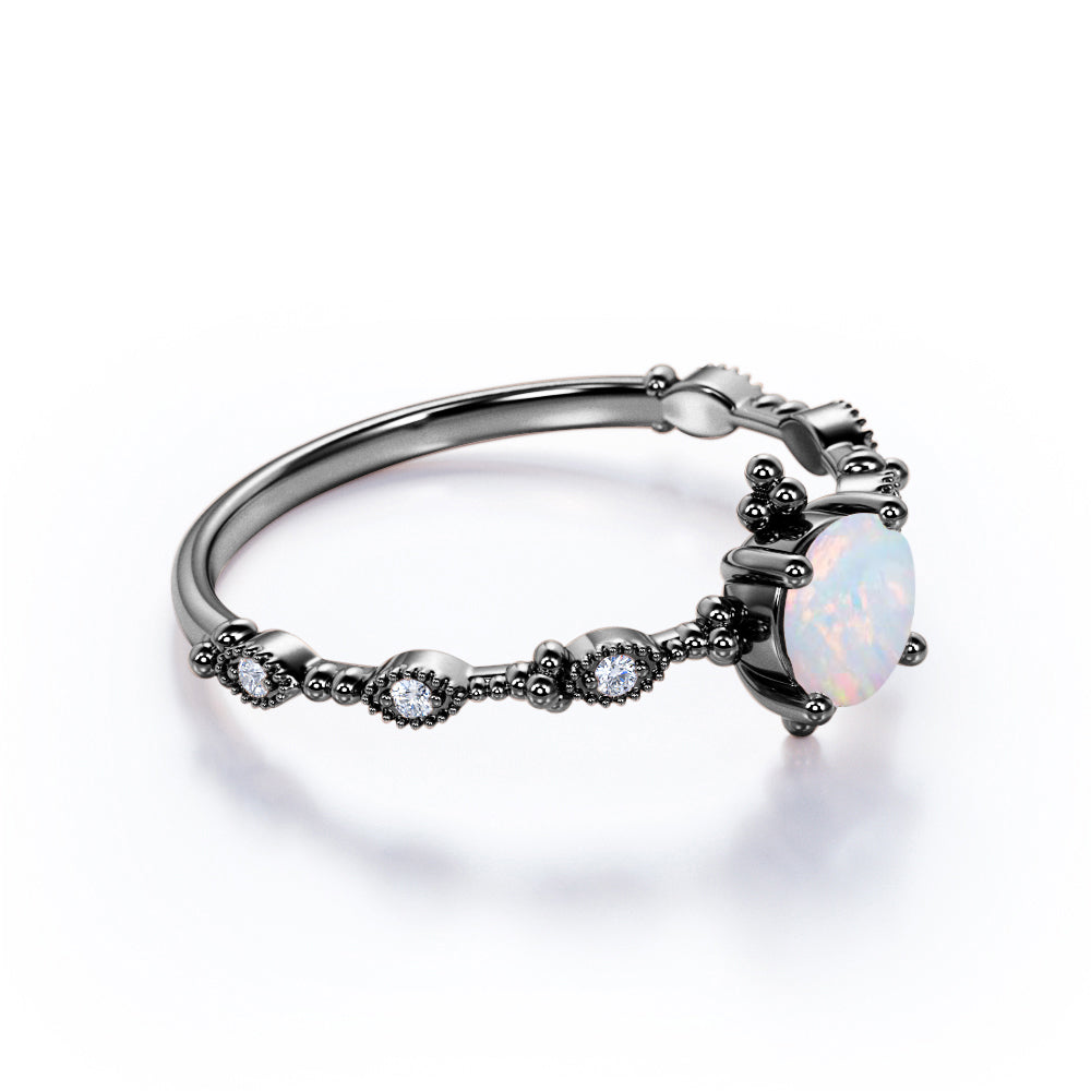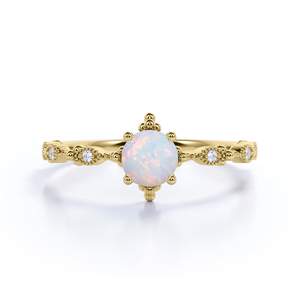 Vintage 1.05 Ct Round Cut Lab Created Opal Engagement Ring