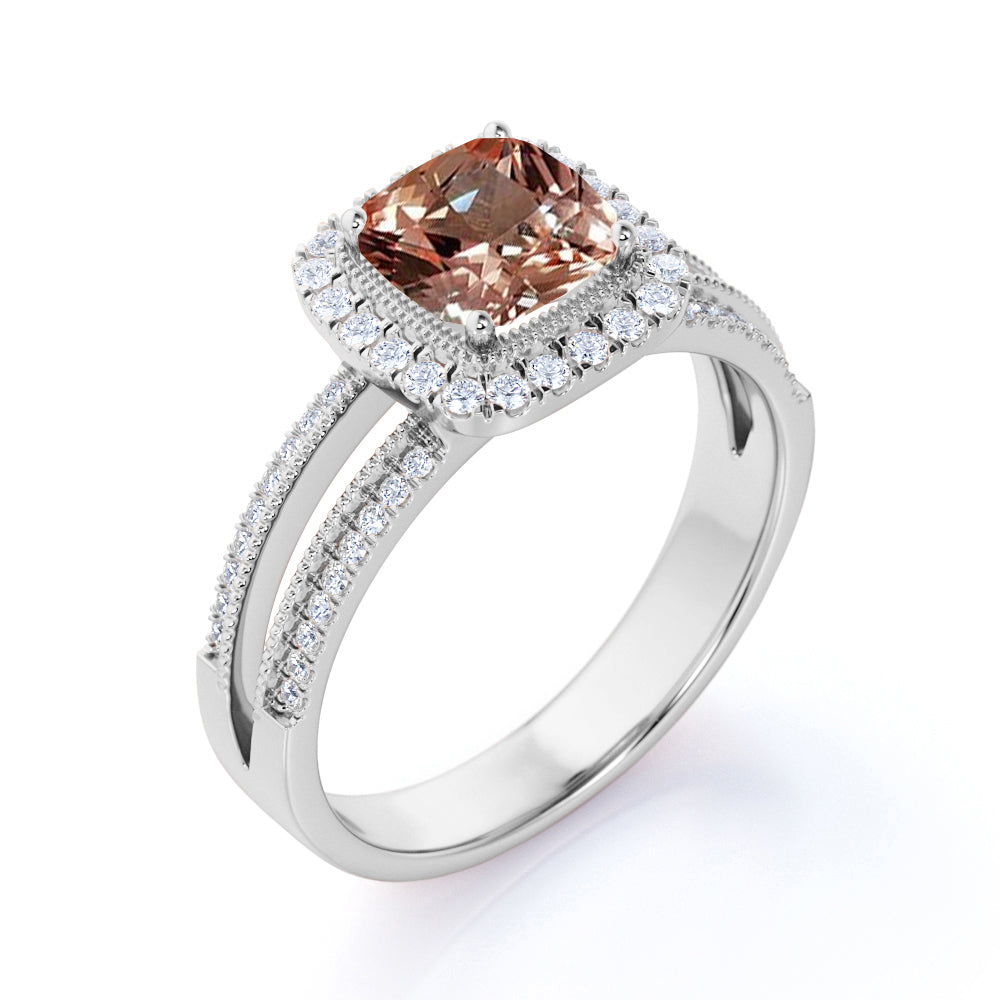 1.75 ct Cushion Morganite Split Shank Infinity Engagement Ring
