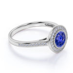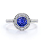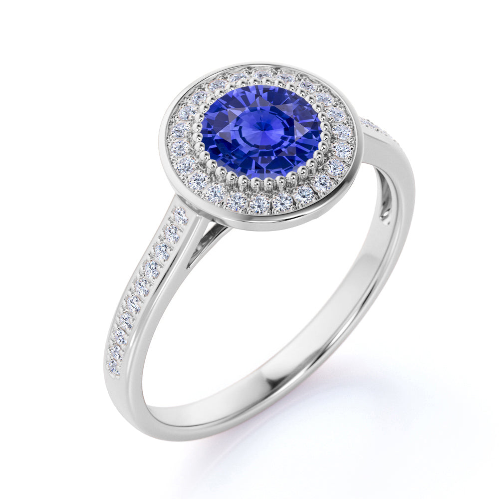 If you don't want a modern blue sapphire ring, this classic blue sapphire ring is the best for you. It reminisce your past and those times when you and her are still young lovers. This trendy blue sapphire ring is so beautiful and durable despite its dainty look. This blue sapphire ring features an approximately 1.75 carat round cut certified blue sapphire, surrounded by .25 carat authentic side diamonds, for a total weight of 2 carats.