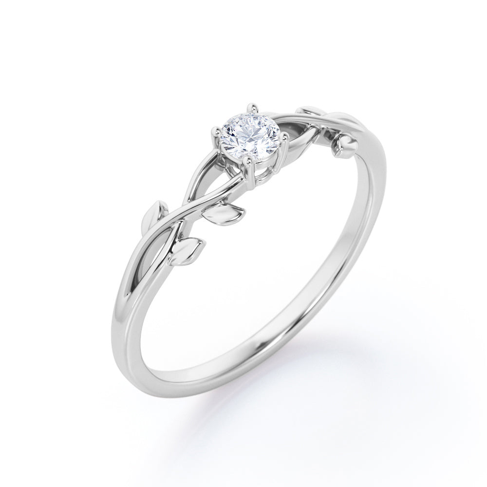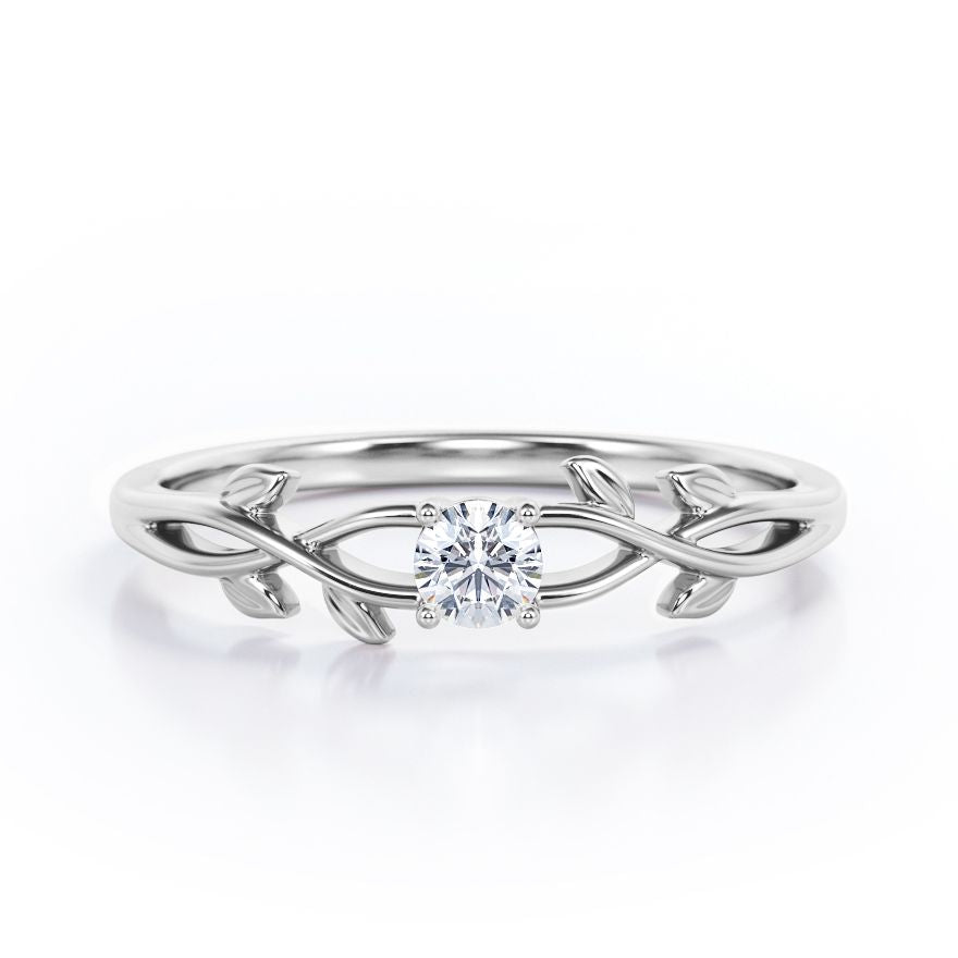 Create a memorable moment with our Botanical Design - 0.5 TCW Round Brilliant Cut Certified Lab Diamond Solitaire Engagement Ring in White Gold. Hand-cut with precision, this engagement ring features a 0.5-carat Certified Lab Diamond and Moissanite set in solid white gold. Perfect for engagements, birthdays, or proposals, it adds a touch of elegance to any outfit. Customize your ring with 10K or 14K white or rose gold options. Enjoy a 30-day full refund, 30-day free resizing, and a 6-month limited warranty that starts from the day your order is delivered. Complete your love story with this beautiful engagement ring.