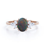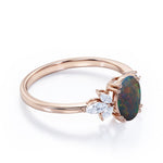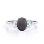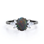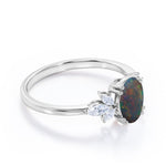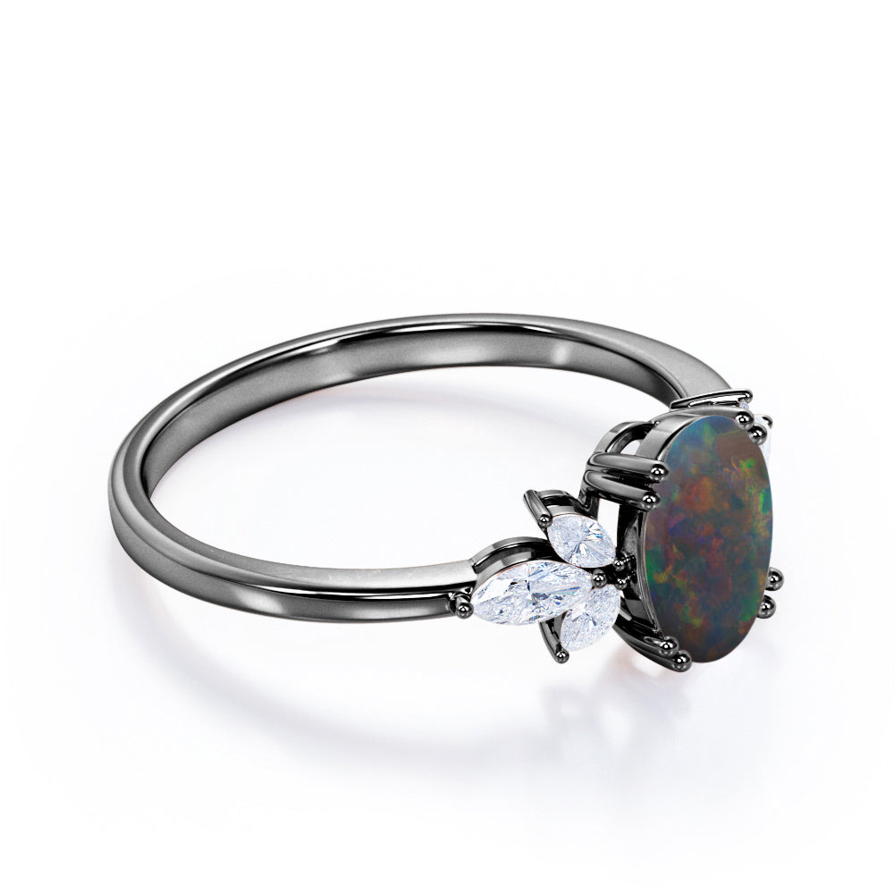 Butterfly style 1.25 Carat Oval Cut Natural Black Fiery Opal And Diamond Nature Inspired Engagement Ring In White Gold