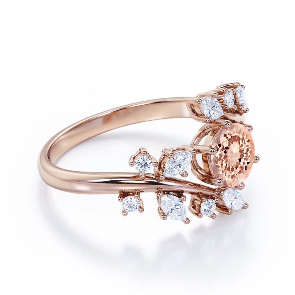 Bypass Nature-Inspired 1 carat Round Morganite and Moissanite Engagement Ring in White Gold