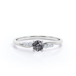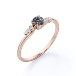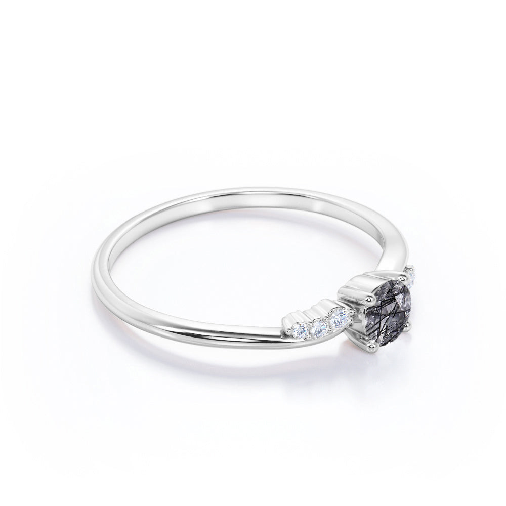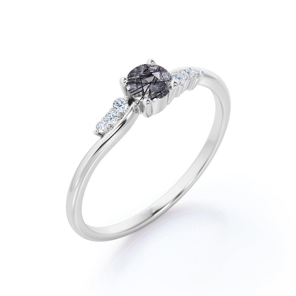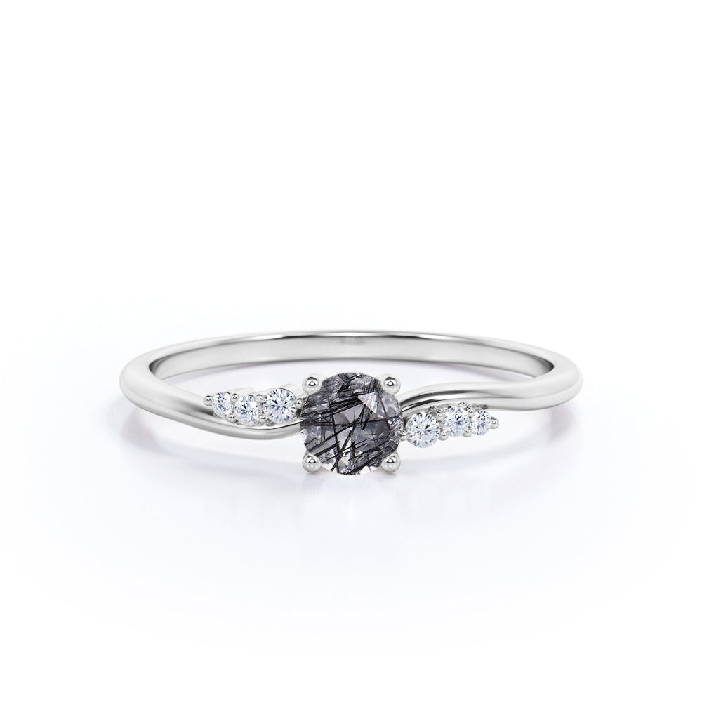 Bypass Prong Setting 0.65 Carat Round Cut Natural Dendritic Black Rutilated Quartz and Diamond 7 Stone Promise Ring - Engagement Ring