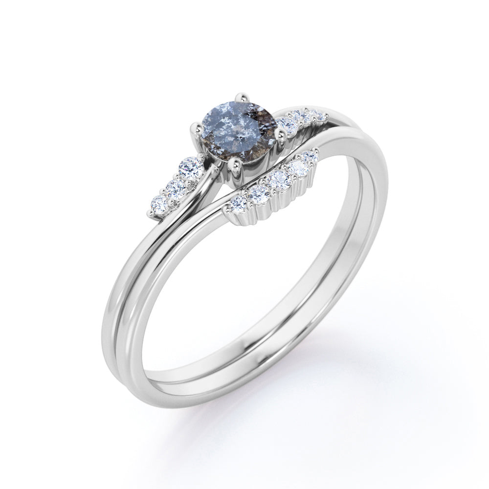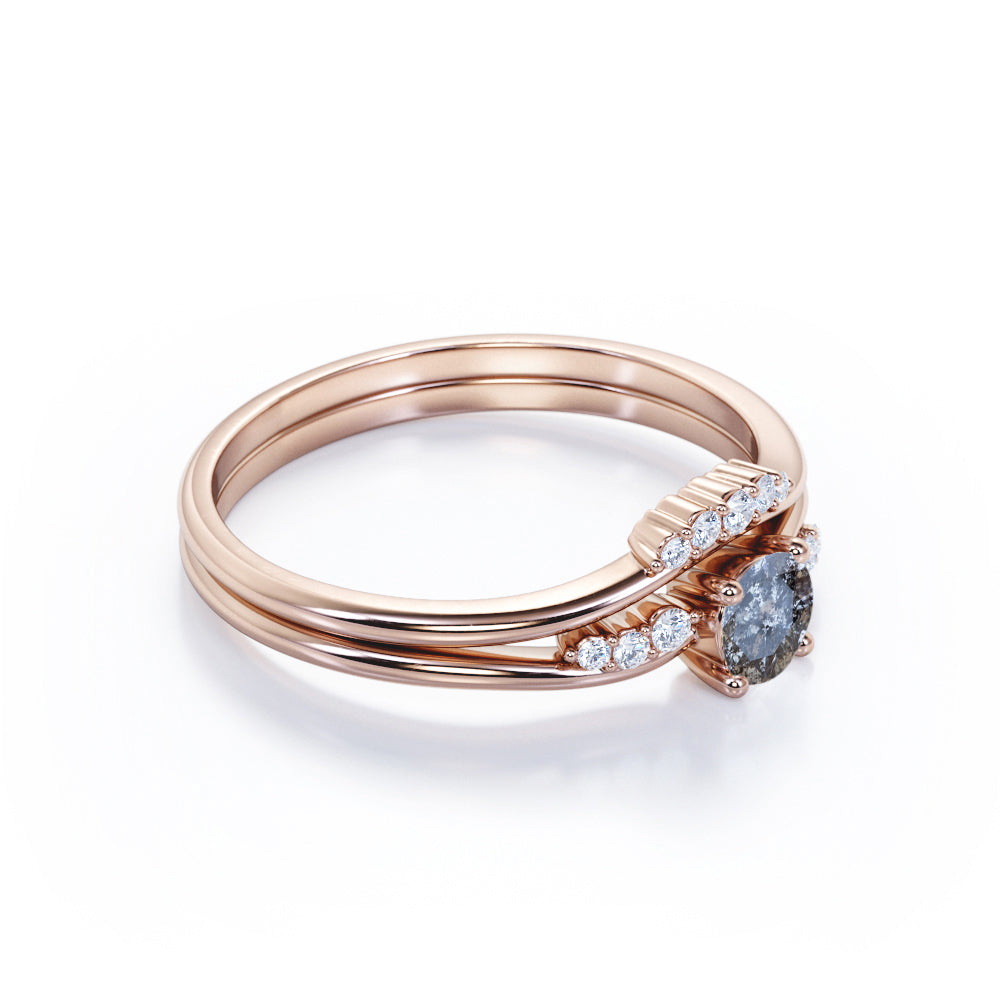 Curved 0.75 Ct Round Cut Salt and Pepper Diamond Bridal Set
