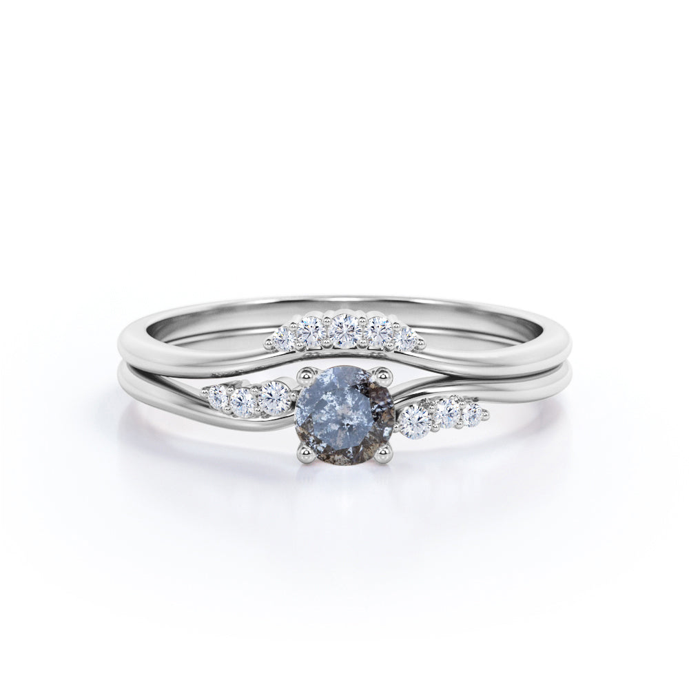 Curved 0.75 Ct Round Cut Salt and Pepper Diamond Bridal Set