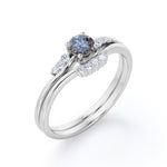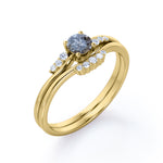 IMPORTANT NOTE: Since each Salt and Pepper Diamonds is one of a kind, the actual color of it may vary from the one that is pictured above. Thanks to its enchanting black and white inclusions, this Bypass Seven Stone 0.75 Carat Round Cut Icy Dark Grey Salt and Pepper Diamond and Curved Band Modern Bridal Set Rings for Her will be as unique as its wearer. This swirl style ring features .50 carat round cut natural Salt and Pepper Diamond and .25 carat real side Diamond for gold ring and Moissanite for silver ring. This unique wedding set rings can be customized to either 10k, 14K and Gold over Silver and either Black Gold, Rose Gold, White Gold or Yellow Gold. Also, as your satisfaction is our most priority, we will do our best to have your handmade jewelry be carefully and beautifully crafted by our expert jewelers. The order also comes with a 30-day full refund policy. Ideal gift for any special occasion, this ring can be gifted on birthday, anniversary, Valentine's day, Christmas, and proposal. With its unique appearance, you can be sure that no any other rings will look exactly alike. If you are looking for alternate gemstone, this Salt and Pepper Diamond is right for you. It suits a variety of ring styles and easily adapted to suit any type of fashion sense. This antique ring is available at a very affordable price yet it offers a very expensive and gorgeous look on your finger. Create a fascinating look on your finger with this Salt and Pepper Diamond ring for women which is available in both solid gold and sterling silver. Those who has a penchant for vintage and flawless ring would completely fall in love with this affordable ring. If you are in search of a unique gift for any occasion, this stunning Salt and Pepper Diamond ring is the best answer for you. Handcrafted with love, this antique ring will complement any style and enhance the charm of its wearer.