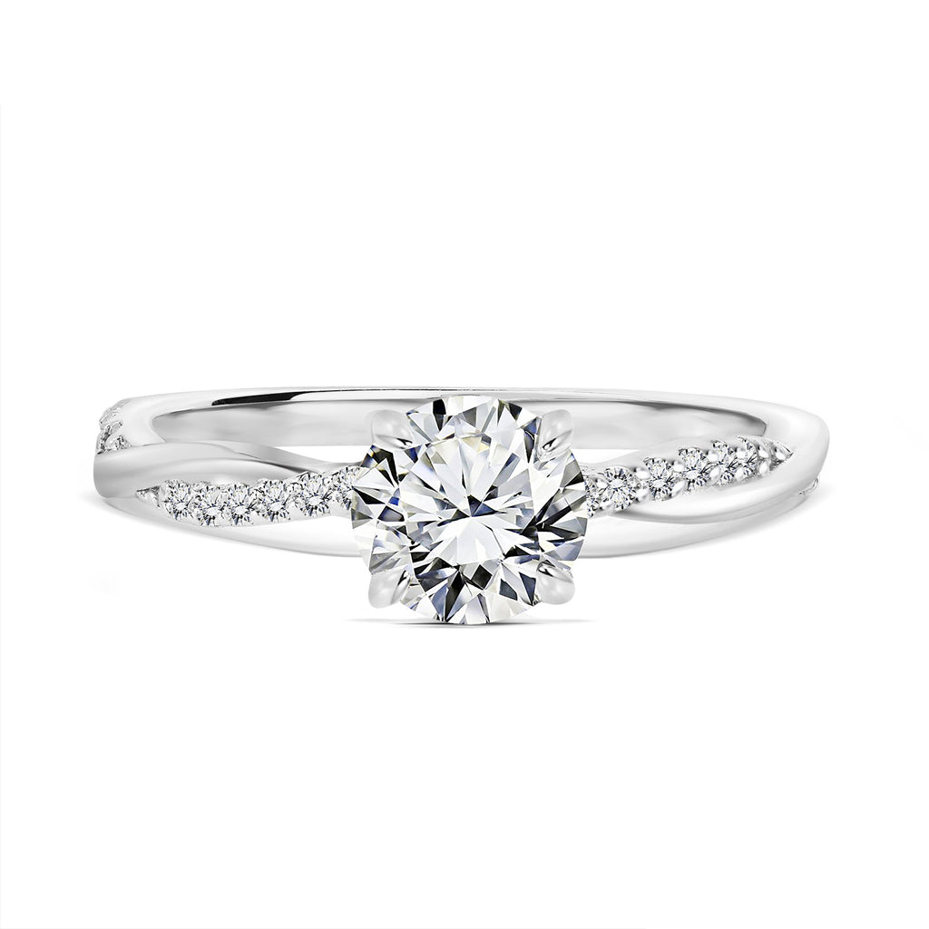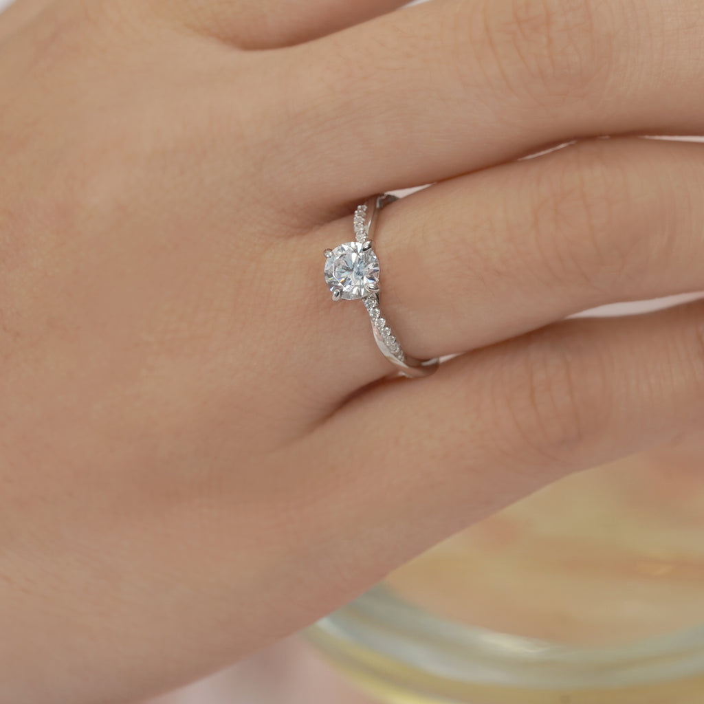 Cathedral Prong 1.25 Carat Round Shaped Moissanite Half Pave Infinity Twisted Shank Engagement Ring In 18K White Gold Plating Over Silver