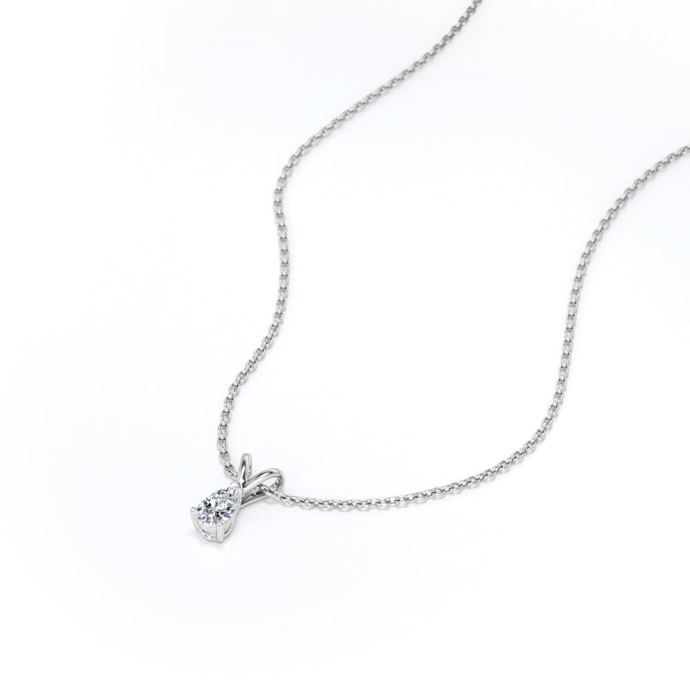 Capture your eternal love with this Certified - 0.5 Carat Pear Cut Moissanite - Elegant Pendant Necklace - 18K Rose Gold Plating Over Silver. Professionally handcrafted into a fine pear cut by our experts in lapidary, this alluring pendant necklace with a moissanite stone integrates 0.5 carat moissanite on solid rose gold plating over silver. Special and non-traditional, this moissanite solitaire pendant necklace is well-suited for those who are not quite into normal lifestyle. With naked eyes moissanites look, shine and feel exactly like diamonds. With its glory and clarity, this moissanite solitaire pendant necklace will absolutely enhance every style of its wearer. Hanging in a silver cable chain that is secured by a spring ring clasp, this pendant necklace with a moissanite stone is beautiful and accessible since it is available at an affordable price. Moissanites are the most popular alternative gemstone for diamonds while being at lower and more affordable price. If you are looking for a special gift for your friends or your better half, this pendant necklace with a moissanite gemstone , the birthstone pendant necklace for the fourth month, symbolizing an unbreakable love and strength, will surely be the best choice. Also, this moissanite solitaire necklace can be customized to your own choice of metal colors: 18K rose gold plating over silver, 18K white gold plating over silver, or 18K yellow gold plating over silver. In regards to its hardness, moissanite is almost as hard as diamond which means that it is notably durable. Let's fulfill your love story with this moissanite necklace and she will be eternally joyful.