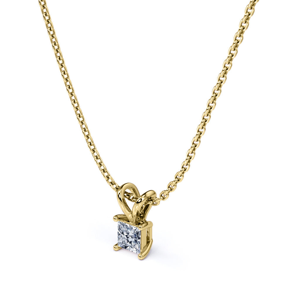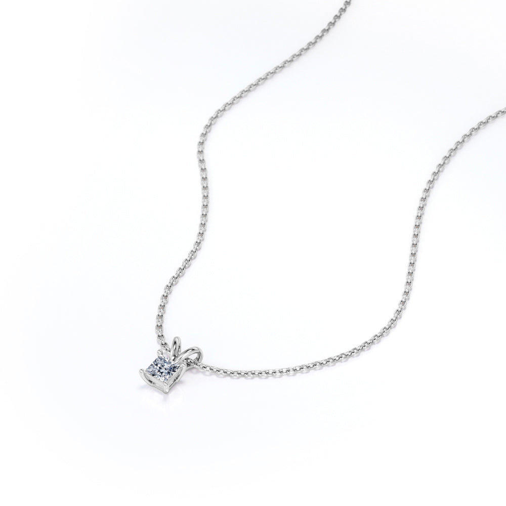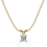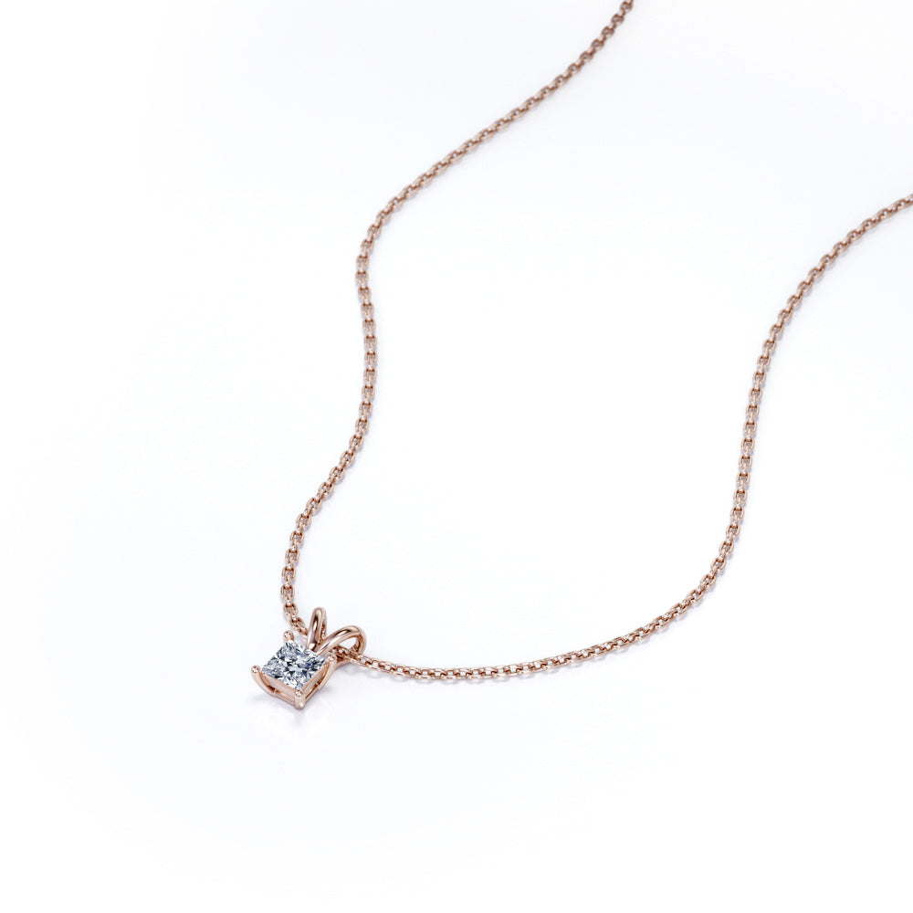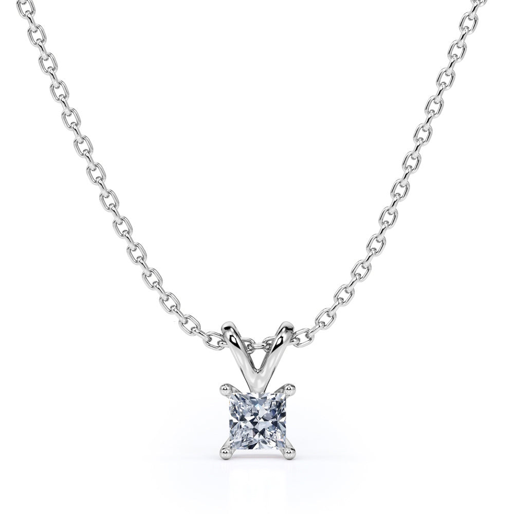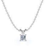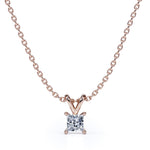 Certified - 0.5 Carat Princess Cut Moissanite - Simple Pendant Necklace - 18K Rose Gold Plating Over Silver