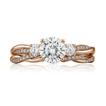 This Lab Diamond radiant bridal set features a total carat weight of 1.20 Ct, symbolizing love’s past, present, and future. The engagement ring showcases a 1 carat round cut lab grown diamond center stone, sparkling with brilliance and elegance. Two side stones and pavé accents, add breathtaking fire and shimmer, and the side stones will be Moissanite. Paired with a coordinating twisted band, This Lab Diamond trio set is the perfect expression of everlasting love and unity.