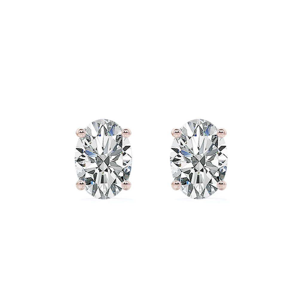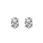 Certified - 1.5 Carat Ovate Moissanite - 4 Prong Solitaire Stud Earrings - 18K Rose Gold Plating Over Silver