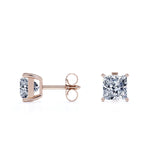 Certified 2.5 Carat Princess Cut Moissanite 4 Prong Solitaire Stud Earrings In 18K Rose Gold Plating Over Silver