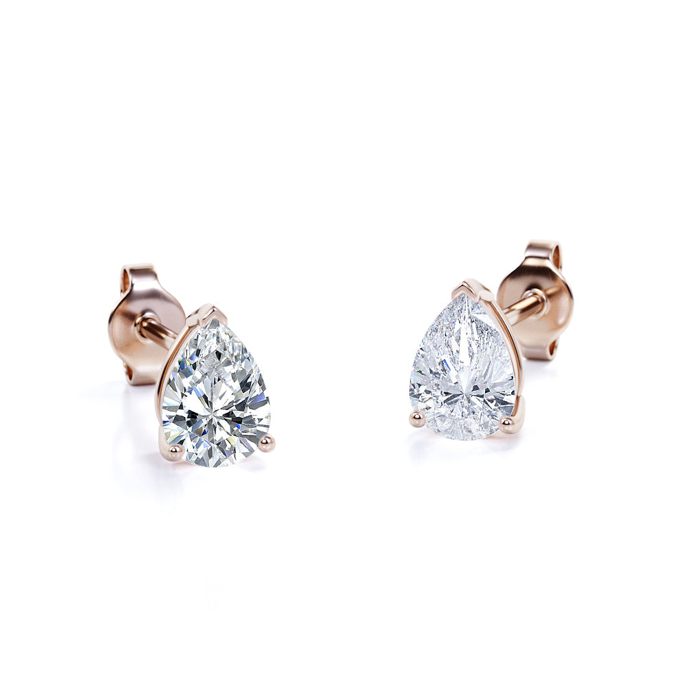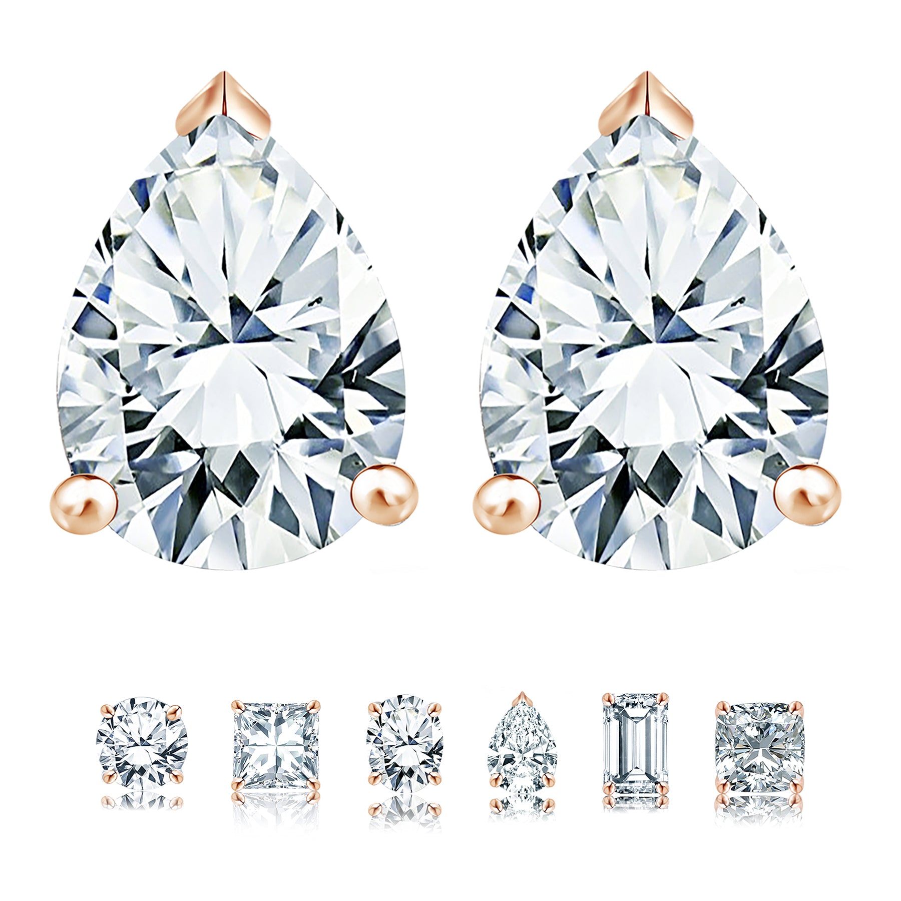 Certified 2 Carat Pear Cut Moissanite Minimalist Solitaire Stud Earrings In 18K Rose Gold Plating Over Silver