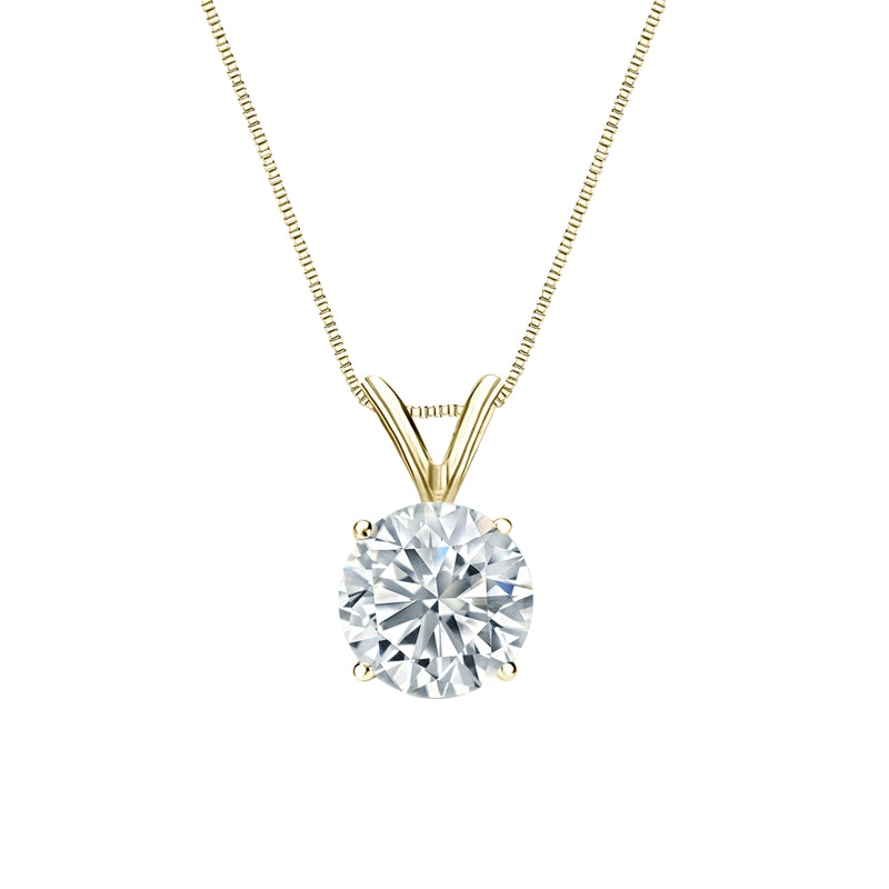 Certified - 2 Carat Round Cut Moissanite Brilliant Pendant Necklace - 18K Yellow Gold Plating Over Silver