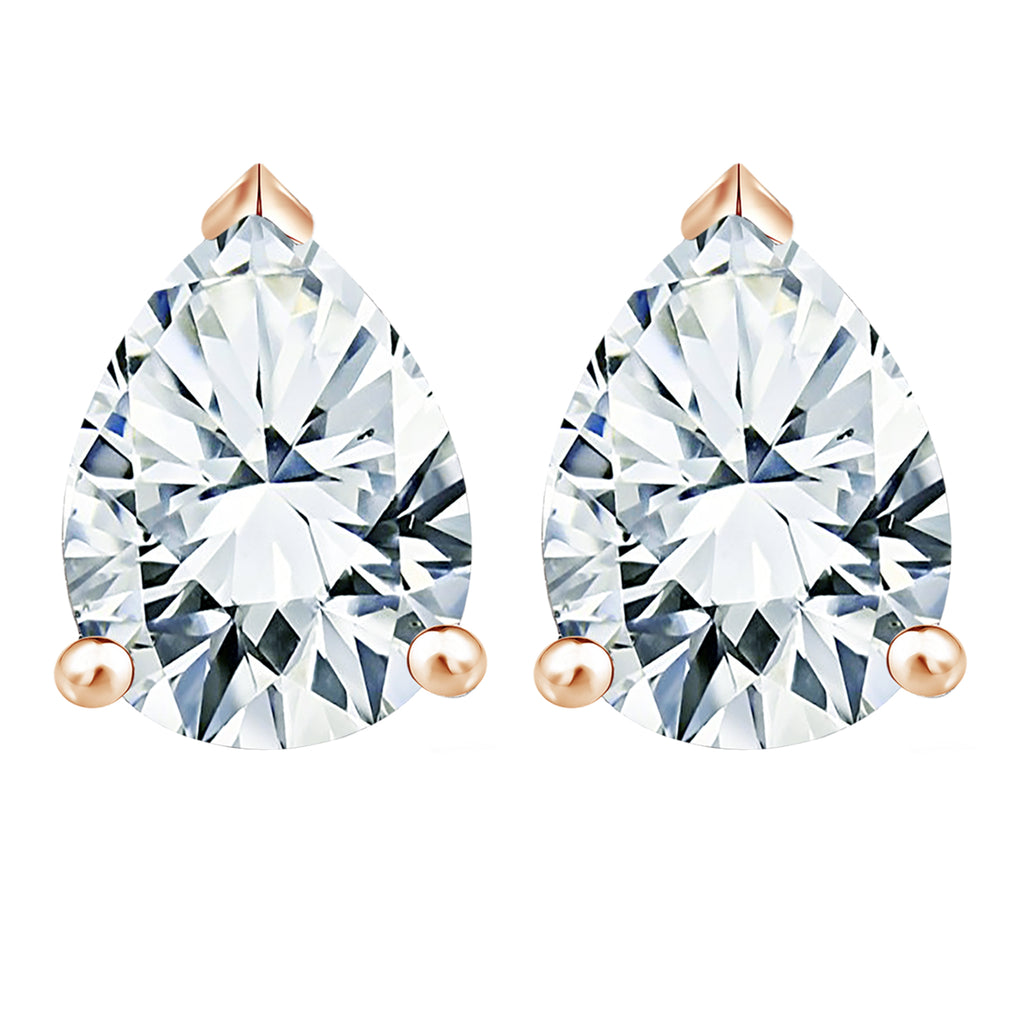 Certified 4 Carat Pear Cut Moissanite Minimalist Solitaire Stud Earrings In 18K Rose Gold Plating Over Silver