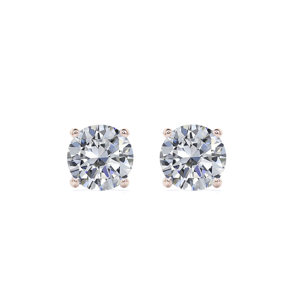 Certified 4 Prong 2.5 Carat Round Shaped Moissanite Solitaire Stud Earrings In 18K Rose Gold Plating Over Silver