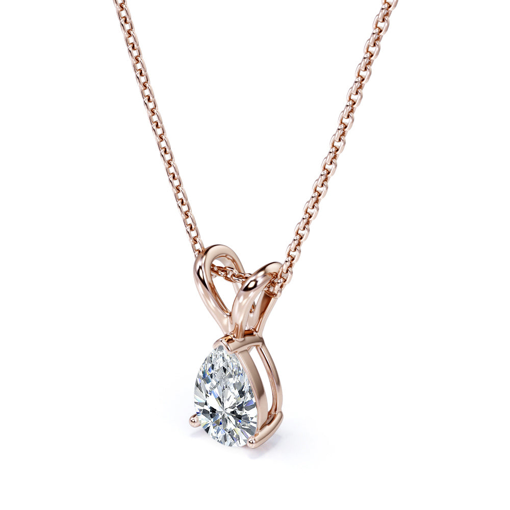 Be shinily standout from the crowd with this Certified Captivating 1.5 Carat Teardrop Moissanite Pendant Necklace In 18K Rose Gold Plating Over Silver . Professionally handcrafted into a fine pear cut by our skilled jewelers, this astonishing pendant necklace with moissanite consists of 1.5 carat moissanite on solid rose gold plating over silver. Special and non-traditional, this moissanite pendant necklace is well-suited for those who are not quite into normal lifestyle. With naked eyes moissanites look, shine and feel exactly like diamonds. Reflective properties of this pendant necklace with a moissanite gemstone will absolutely enhance every style of its wearer. Hanging in a silver cable chain that is secured by a spring ring clasp, this moissanite solitaire necklace is beautiful and accessible since it is available at a reasonable price. Moissanites are the most popular alternative gemstone for diamonds while being at lower and more affordable price. Considered as a symbol of timeless love and affection for your lover, this pendant necklace with moissanite can definitely help you out. This moissanite pendant necklace can be customized, so customers can choose one of metal colors between 18K rose gold plating over silver, 18K white gold plating over silver, and 18K yellow gold plating over silver. In regards to its hardness, moissanite is almost as hard as diamond which means that it is notably durable. Let’s impress her with this pendant necklace with a moissanite stone and, surely, she will not regret it.