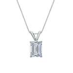 Certified Dazzling 1 Carat Emerald Cut Moissanite Pendant Necklace In 18K White Gold Plating Over Silver