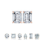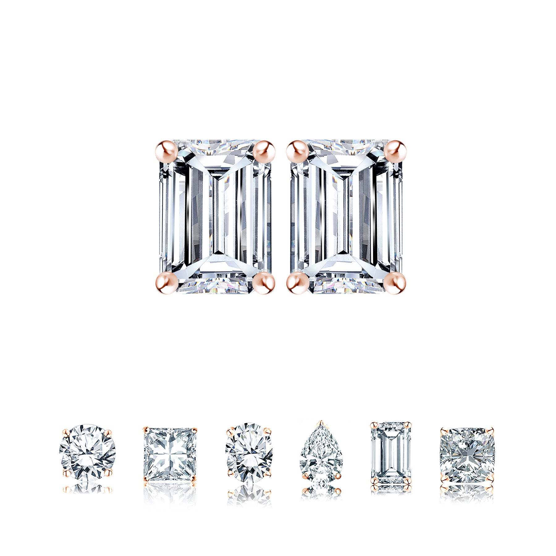 Certified Minimalist 0.5 Carat Emerald Cut Moissanite Solitaire Stud Earrings In 18K Rose Gold Plating Over Silver