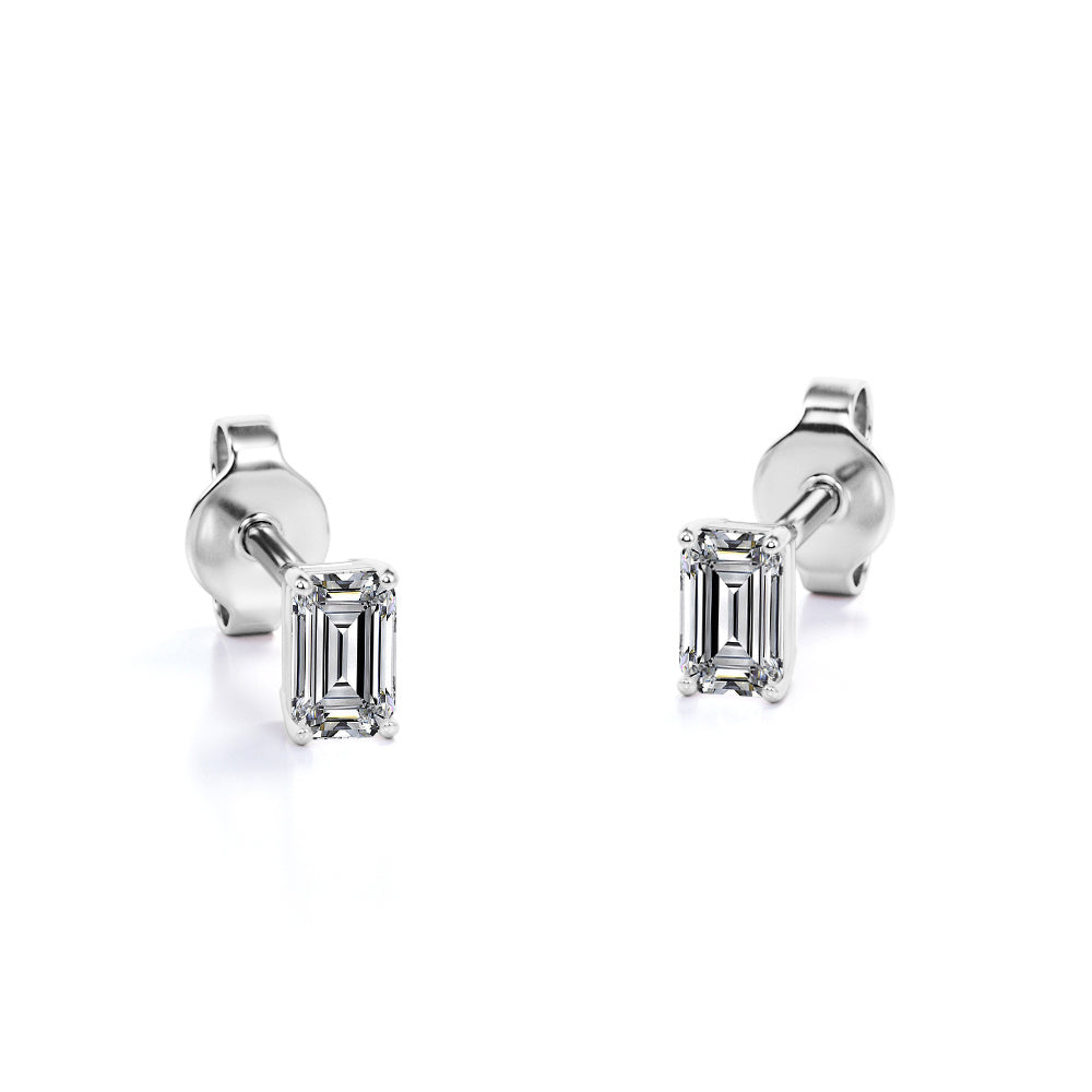 Soothe your soul with these Certified Minimalist 0.5 Carat Emerald Cut Moissanite Solitaire Stud Earrings In 18K Rose Gold Plating Over Silver. Skillfully hand-cut into a nice emerald cut by our experts in lapidary, these flawless moissanite screw-back stud earrings combine 0.5 carat moissanite on rose gold plating over silver, and each side of the earrings weighs 0.25 carat. Special and non-traditional, these moissanite screw-back stud earrings is well-suited for those who are not quite into normal lifestyle. With naked eyes moissanites look, shine and feel exactly like diamonds. With its glory and clarity, these moissanite stud earrings will enhance happiness and attract positive vibes. These moissanite screw-back stud earrings are beautiful and accessible since it is available at an affordable price. Moissanites are the most popular alternative gemstone for diamonds while being at lower and more affordable price. These moissanite solitaire earrings , the birthstone earring set for the fourth month, symbolizing an unbreakable love and strength, will surely be the best choice. These moissanite solitaire earrings can be customized, either in 18K rose gold plating over silver, 18K white gold plating over silver, or 18K yellow gold plating over silver, upon customer request. In regards to its hardness, moissanite is almost as hard as diamond which means that it is notably durable. Let's fulfill your love story with these solitaire stud earrings and, surely, she will not regret it.