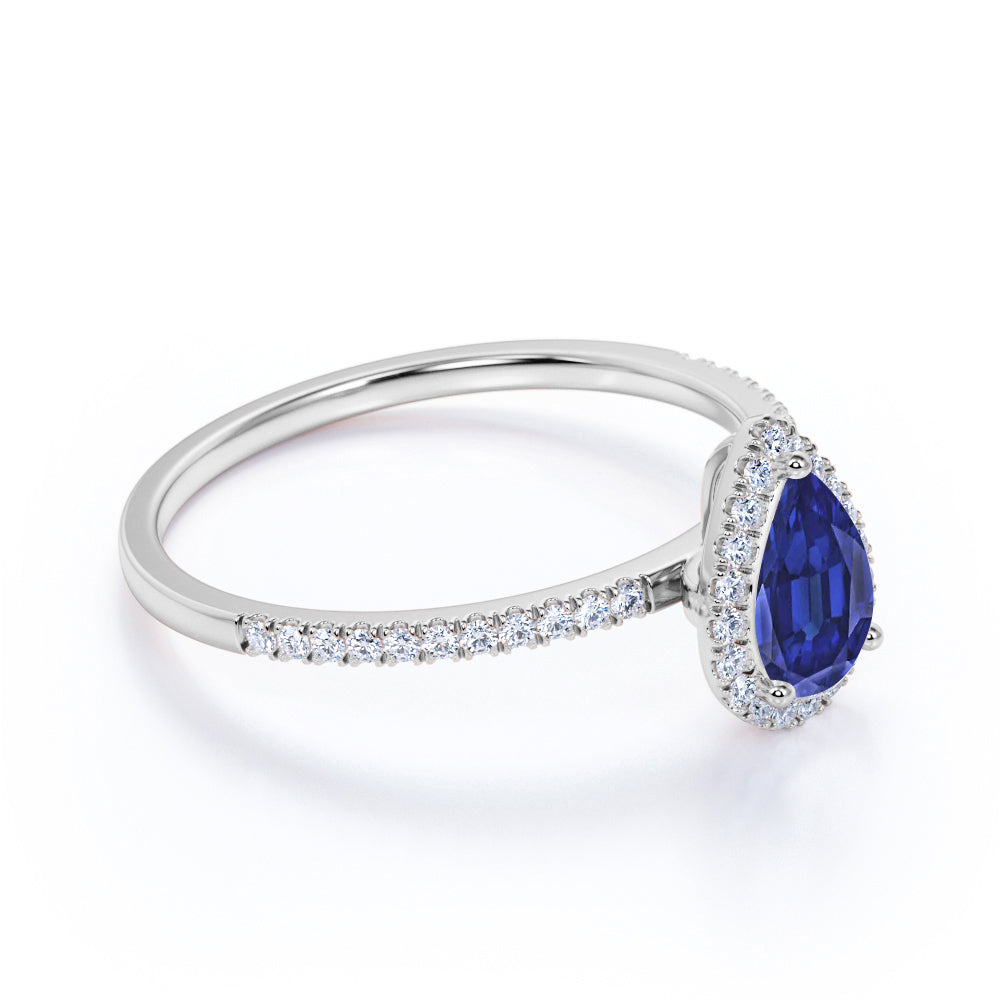 Halo 1.50 Ct Pear Cut Lab Sapphire Engagement Ring